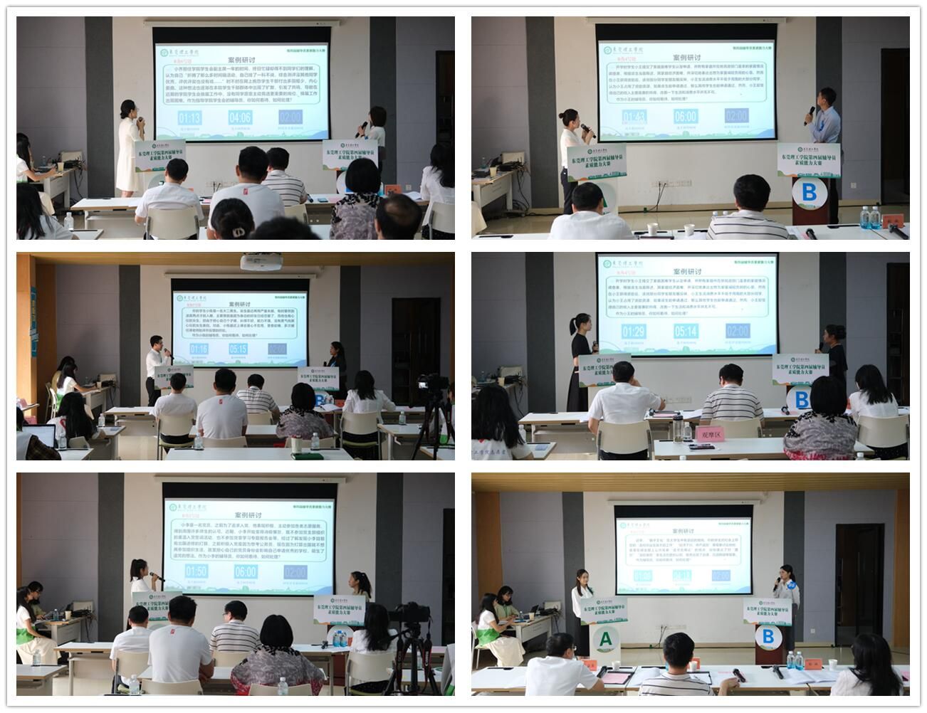 本届大赛对标省赛赛制,分为初赛、决赛两个阶段,设有基础知识测试、案例研讨与谈心谈话等三个环节,共有44名来自各学院的辅导员参与初赛,最终共12名选手晋级决赛。