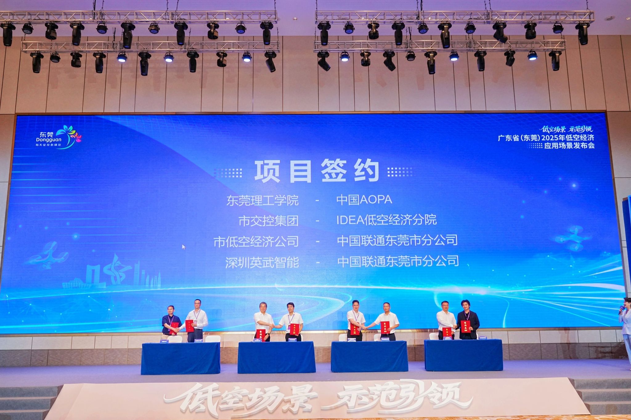在本次发布会上,学校副校长郑愚代表东莞低空经济产业联盟与深圳低空经济产业协会签订了莞深低空战略合作协议,同时与中国AOPA(中国航空器拥有者及驾驶员协会)也签订了合作协议。未来三方将在低空飞行技术、无人机应用、空中智能管理等多个领域开展深度合作,这标志着低空经济领域,莞深两地正式牵手,携手共建大湾区低空经济产业集群迈出关键一步。本次与行业内领先机构建立合作关系,进一步巩固了我校在低空经济领域的科研领先地位,并为推动低空经济产业化及市场应用提供了强有力的技术支撑。