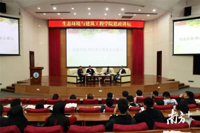 在“生态东莞——绿水青山就是金山银山”课程思政专题讲座中,生态环境与建筑工程学院教师党委利用自身服务地方的优势,主动联系行业专家、搭建对话平台。马克思主义学院教授发挥思政专业优势,精心遴选思政元素、设计授课内容,为学子们送上一场有深度、接地气的专题讲座。