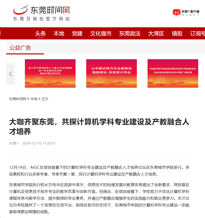 12月14日,AIGC及信创背景下的计算机学科专业建设及产教融合人才培养论坛在东莞城市学院举行。来自高校和行业多家学者、专家齐聚一堂,探讨计算机学科专业建设及产教融合人才培养。