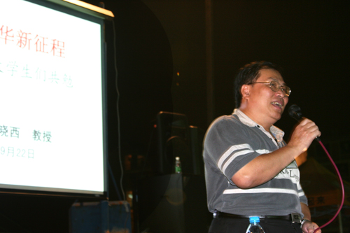 9月22日晚,院长杨晓西教授走进军训团,与新生零距离接触,为新同学们作了一场题为《金色年华新征程》的报告。