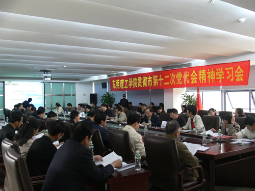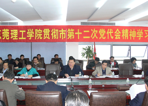 学习会上,学院党委副书记、院长杨晓西结合东莞市第十二次党代会精神,从努力建设有创新特色的名牌地方院校的奋斗目标出发作了讲话。杨院长认为,学习贯彻市第十二次党代会精神对学院的发展具有重要的意义,学院上下必须将会议精神与做好当前各项工作结合起来,努力建设有创新特色的名牌地方院校,为“推进经济社会双转型、建设富强和谐新东莞”作出应有的贡献。当前,学院要做好的工作包括: