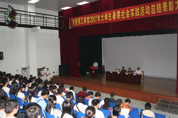 一批在暑期社会实践中表现突出的先进个人、集体在大会上受到表彰。其中,工商管理系、中国语言文学系等两个系获优秀组织奖单位,何先义、刘永安、严前海、谢炯标、李春红等五位获优秀指导老师,东莞市横沥镇实践分队等13个优秀实践团队,《民办教育在东莞的发展》等10篇优秀调研报告,李晓彦等456名活动积极分子,《勇闯毕业墙》等18件摄影作品给予了表彰。