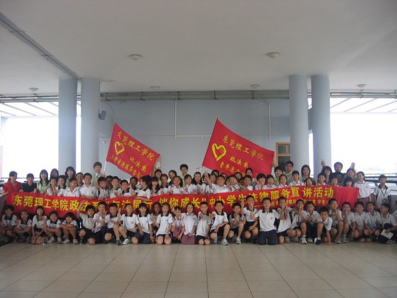 政法系法律宣传服务志愿队分别在东莞中学松山湖学校小学部四年级的四个班级对小学生进行法律宣传讲课。法律宣传活动主要包括实用法律知识问答,结合真实案例教导小学生们如何进行正确的自我保护,攀比心理的危害、预防及改正等内容。小学生们都津津有味地听课并踊跃发言,课堂气氛活跃,活动取得了预期的效果。