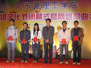 学生处副处长、团委书记彭晓波,赞助单位中国移动公司东莞城区分公司副总经理杨志勇,提供活动技术支持的东莞狼烟网络科技有限公司首席顾问姜念兵,计算机学院团总支书记劳丹观看了比赛并为各项比赛的获奖选手颁奖。