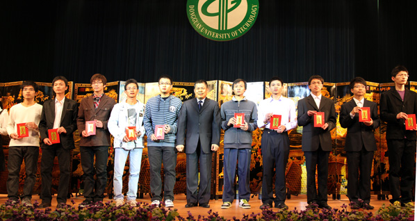 近年来,我校办学得到社会各界的大力支持,在当晚的颁奖的各类奖学金中,最引人注目的是“杨振宁奖学金”,本学年度共有6个团队获得该项奖学金,他们都是在全国各种科技竞赛中获得优异成绩的学生团队。另外,还有10家企业分别设立的奖学金,奖金总额达427500元。其中个人获得奖金最高的是由广东光大企业集团、东莞市康华投资集团有限公司、东莞市新世纪房地产开发有限公司分别设立的“光大”奖学金、“康华”奖学金”和“新世纪”奖学金,今年共有48名同学获得,每人奖金是5000元;而“新维思”奖学金、“东穗”奖学金、“驰鹏”奖学金由我校的校友设立,今年共有41人获得,;此外,还有“国基集团”奖学金、“外商协会”奖学金、“得利钟表”奖学金和“高铁科技”奖学金,今年共有65人获得。