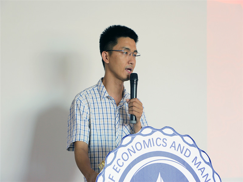 赵虎先生从自己的工作领域向同学们分享了相关金融知识,鼓励同学们要勤于思考。随后,优秀参赛选手周志敏上台发言,对自己在比赛中的表现和所感所悟进行总结。