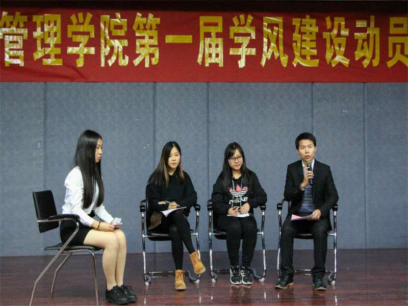 11月28日晚,为充分调动师生参与学风建设的主动性,加强同学们学习意识和自我管理意识,经济与管理学院举办第一届学风建设系列活动动员会。大会请来经济与管理学院党总支副书记劳丹,经济与管理学院的校友陈锦全、张曼如、柯丹霞等嘉宾。