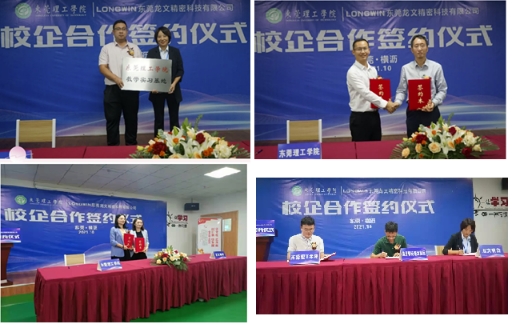 仪式上,郭建文与龙文精密签订了教学实习基地协议,机械工程学院院长助理曹晓畅与龙文精密签订高精密行星减速器关键技术开发及智能制造示范项目协议,学院智能制造教师党支部书记卢文娟与龙文精密党支部签订结对共建协议,学院智能制造系博士张建阁与横沥创新驱动办、龙文精密签订了科技特派员协议。