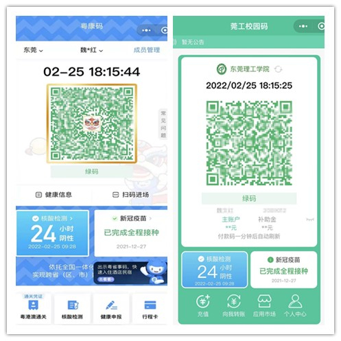 疫情反复来袭,保障师生安全是头等大事。为配合做好疫情防控工作,保护校园安全,网信办、网络中心在寒假期间积极与东莞市政务服务数据管理局联系,完成“莞工校园码”与“粤康码”的无缝对接,打通了核酸检测报告、新冠疫苗接种情况、东莞健康码查询和学校中央认证系统的接口,又一次实现了“让数据多跑路,让师生少跑腿”。